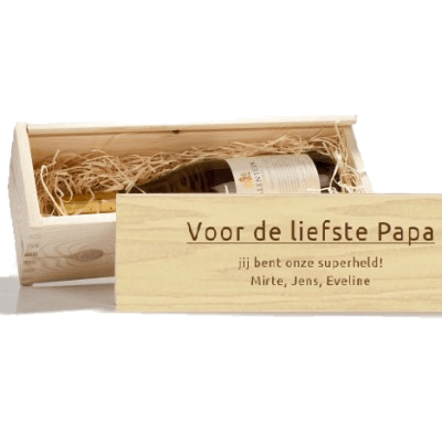 ► Gepersonaliseerd Vaderdag Wijnkistje – Voor papa’s die op z’n tijd genieten van een kwaliteitswijn is dit het ultieme geschenk; een houten kistje met vader’s lievelingswijn die je zelf uitzoekt en feestelijk laat verpakken in een gepersonaliseerd houten kistje waarop je je eigen tekst kunt laten drukken. Dit doe je allemaal in een handomdraai online. Voor 17:00 uur besteld is de volgende dag bezorgd, of gebruik de handige bezorgkalender. Gespot op Flesjewijnbezorgd vanaf €18,95