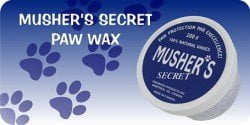 Maar dan zijn we er nog niet. Wat te denken van die koude hondenpootjes in de gure wind in de koude natte sneeuw? Musher’s Secret is een veilige en natuurlijke manier om hondenpoten te beschermen. Het is gemaakt van 100% natuurlijke waxen en vormt een onzichtbare, ademende barrière om de poten van jouw viervoeter. De wax wordt geabsorbeerd waardoor transpiratie kan ontsnappen via de tenen. Musher’s Secret is ontwikkeld in Canada voor gebruik met sleehonden. Het biedt de ultieme bescherming voor je hond, zelfs in de meest extreme weersomstandigheden, zoals zout en chemicaliën, heet zand en asfalt, ijsvorming en sneeuwbaleffect of een ruw terrein.