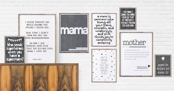Kies voor de stoere tattooprint, een woordposter, eentje met haar favoriete songtekst, een bijzondere special dates poster, of wat dacht je van de tekst; ‘Who needs superheroes when you have a supermom? Zoveel moeders, zoveel smaken en zoveel stijlen en voor iedere moeder is er een hippe wall candy.