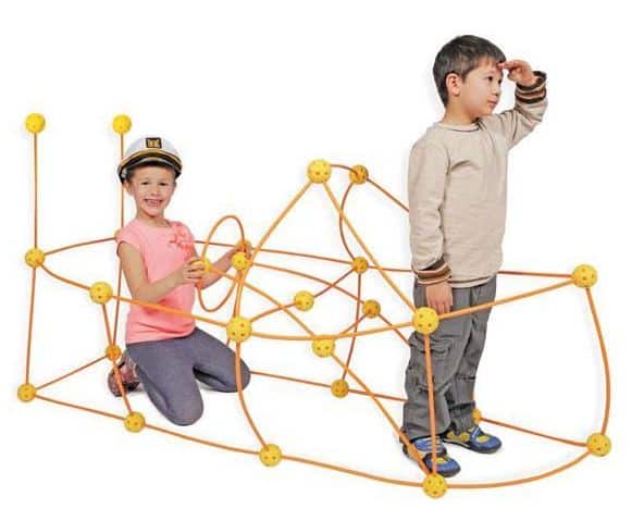 Crazy Forts is zowel binnen als buiten te gebruiken en geschikt voor kinderen vanaf 3 jaar met hulp van volwassenen. Kinderen vanaf circa 5 jaar kunnen er zelfstandig mee aan de slag gaan. De 69-delige set bevat 25 ballen om te koppelen en 44 stokken om mee te bouwen. De prijs is €64,95.