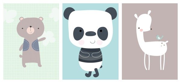 Speciaal voor de giveaway op Hippe Shops stelt Dreumes enZo een posterpakket beschikbaar met drie prachtige dierenillustraties: panda, beer en hert, allemaal geschikt voor de kinderkamer of babykamer. De lieve panda kijkt heerlijk onschuldig uit zijn oogjes. De poster heeft mooie kleuren in blauwtinten. De poster met het schattige hert is wit met een grappig vogeltje op zijn rug. De achtergrond is taupe kleurig en bijvoorbeeld erg mooi om te combineren met de mint babykamer. En dan is er nog de blije beer in taupe tint met een mintgroene achtergrond met wolkjes.