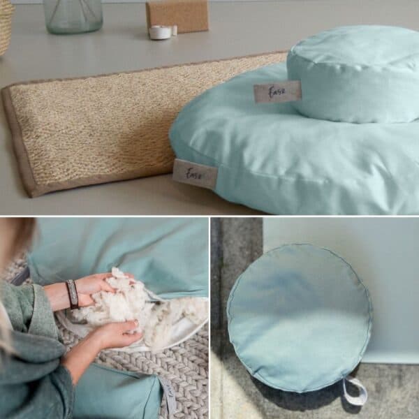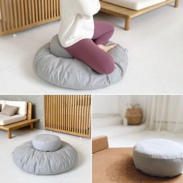 Ervaar ultiem zitcomfort tijdens het mediteren met deze meditatiekussen set, bestaande uit een ronde zabuton (meditatiemat) en een rond meditatiekussen. Het gebruik van de superzachte zabuton onder je meditatiekussen zorgt voor een heerlijk zitcomfort en voorkomt ongemakken aan enkels en voeten.