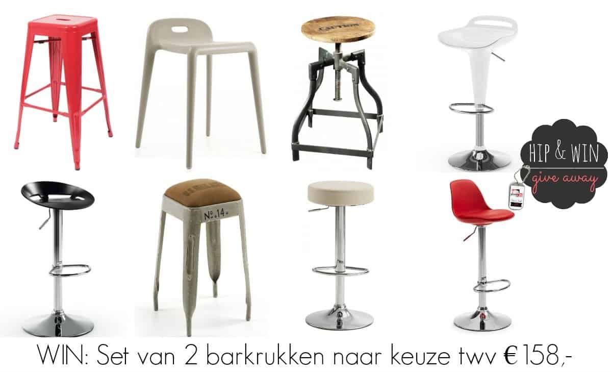 Vul het Hip & Win deelnameformulier in waarbij je het antwoord geeft op de volgende vraag: Welke barkruk zou je graag als set van 2 willen winnen? Klikker-de-klik door naar de site van www.barkrukkenwinkel.comen zoek jouw favoriete barkrukken (ter waarde van maximaal €79 per barkruk).- Deze winactie loopt t/m 13 mei