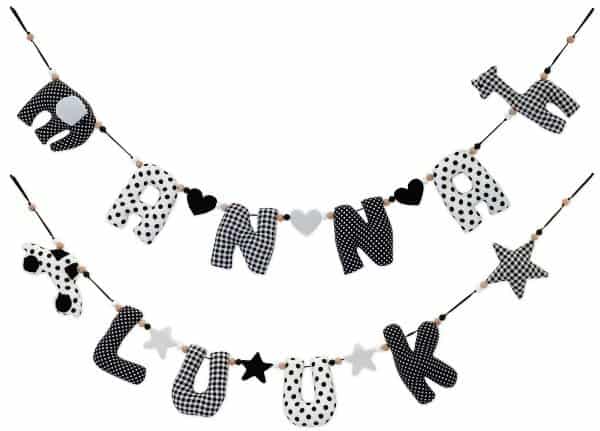 Wat is er nou leuker dan een slinger met de naam van jouw kindje in mooie handgemaakte zachte speelse letters die de babykamer net dat persoonlijke tintje geeft. De collectie naamslingers van Kiddy Colors kent naast hippe kleurtjes zoals pastel en natuurtinten voor zowel jongens- als meisjeskamers ook een monochrome lijn die in elke babykamer past. Met de handige online module in de webshop van Kiddy Colors stel je eenvoudig de gewenste naam samen en zie je direct het resultaat op je beeldscherm.