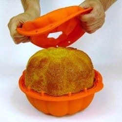 Deze bakvorm van het merk ‘Lekue’ is gemaakt van siliconen, en dus makkelijk in gebruik. Het bestaat uit 2 helften waarin totaal een inhoud van 2300 ml past. Met deze leuke siliconen vorm kun je heerlijk aan de slag, met of zonder kids en de heerlijkste recepten maken, in de vorm van een pompoen. Gegarandeerd succes, zeker rond halloween! Dit artikel wordt geleverd in een fraaie, kleurrijke cadeauverpakking, inclusief receptenboekje.