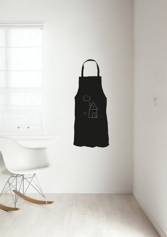 Maar toen ik ging kijken bij Muurstickerboetiek.nl zag ik wel hele leuke stickers voor de wat kale plekken die we nog hebben in onze keuken. Deze hippe krijtbordsticker bijvoorbeeld in de vorm van een schort vind ik echt supertof!