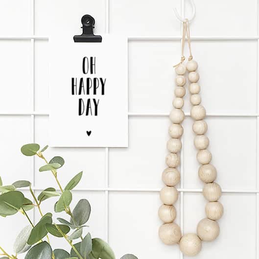 Helemaal hip in een zwart-wit met blank houten interieur maar ook heel trendy in en strak en een brocante interieur is de houten woonketting. Maar wat dacht je bijvoorbeeld van de babykamer en kinderkamer? Daar doen deze houten kralen het ook super goed. Doe er een geboortekaartje aan, een verjaardagkaart of de favoriete foto van je kindje.