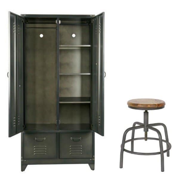 Of wat dacht je van deze kast? Een hele gave locker die het in het hele huis erg goed doet. Of je hem nu als garderobekast gebruikt in de hal, als oogstrelend mooie opberger in je werkkamer of als kledingkast op de kinderkamer. Hij past overal. Ontzettend tof in een stoer en industrieel interieur. Deze blikvanger heeft twee deuren en twee laden en is voorzien van een hang- en leggedeelte. En is gemaakt van antiek zwart staal, waardoor hij weer heel goed te combineren is met het warme hout.