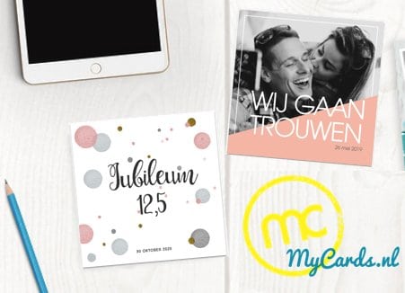 Voor het versturen van uitnodigingen kun je bij MyCards.nl ook perfect terecht. Of het nu voor een jubileumfeest, sweet sixteen party, vijftigste verjaardag, communie, opening of voor bijvoorbeeld een high tea, doopfeest of pensionering is, voor elke gelegenheid is er een passend ontwerp. Geef je een diner party? Dan zorgen bijpassende menukaarten voor de finishing touch.
