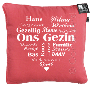 Speciaal voor de giveaway op HippeShops stelt Ook anders een Grote Luxe Kussenhoezen naar keuze beschikbaar die jij helemaal kunt laten samenstellen op basis van jouw wensen. Door het plaatsen van een naam, of initialen of je eigen woorden of tekst wordt dit sierkussen een heel persoonlijke blikvanger voor in jouw interieur. De zeer mooie en kwalitatief sterke kussenhoezen zijn van het merk In the Mood en afgewerkt met een mooie piping en zijn 45 x 45 cm groot. Je kunt kiezen uit 13 verschillende thema’s, 18 verschillende kleuren kussen, 6 verschillende kleuren van de tekstopdruk en tot slot de naam of boodschap invoeren.