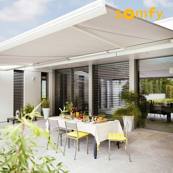 Hartje zomer, als de zon op z’n hoogst staat, dan kan de zon te fel en te warm worden. Dan zoek je graag beschutting in de schaduw. Met slimme zonwering geniet jij in het warme seizoen optimaal van weldadige schaduw met slechts één druk op de knop. Want een Somfy zonnescherm is ervoor gemaakt om je zonnescherm elektrisch bedienbaar te maken. Zo kun jij lekker blijven luieren zonder enige inspanning. Want het is midden op de zomerdag al warm genoeg!