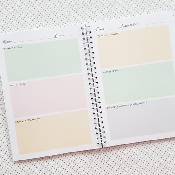 Er is ook een blok voor speciale thema’s zoals lichaam en gezondheid waar je bijvoorbeeld updates invult over kleding, dokter bezoeken of medicijnen. En er is een apart blok voor hobby en sport waar beide ouders alles goed kunnen bijhouden.