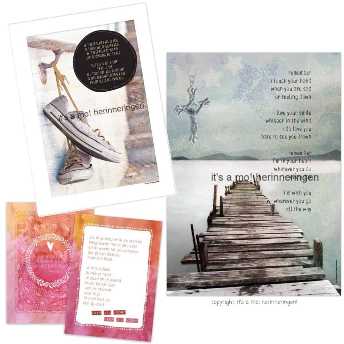 ITSAMOHERINNERINGEN.NL – Een herinnering is bijzonder, een herinnering is van jou. Een troostposter is een poster met een mooie vormgeving en prachtige tekst. Een poster die past boven je bureau, in een verpleeghuis, verzorgingshuis, wachtkamer of gewoon in je gang. Gewoon, omdat je er steun uit kunt putten. Een prachtige poster die je graag inlijst en laat zien. Het formaat…
