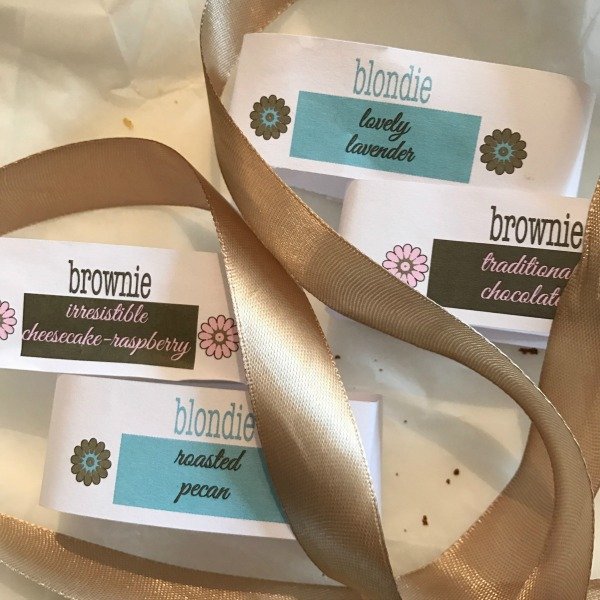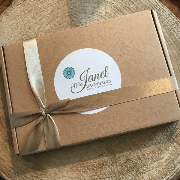 Via de post ontvang ik een brievenbuspakketje van Mrs Janet Brownerie met daarin een proeverij van brownies en blondies. Het pakketje is verpakt met een mooi satijnen lint.