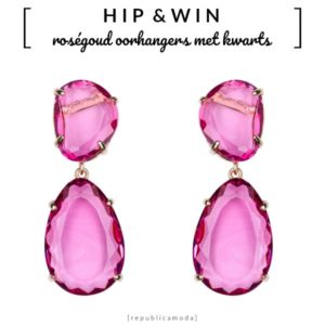 WIN: Roségoud vergulde oorhangers met fuchsia kwarts twv €79