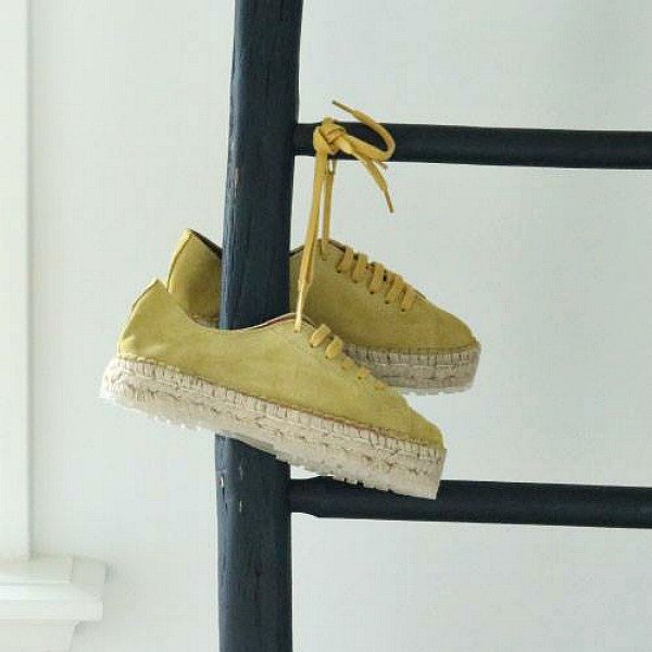 De gele espadrilles van suède uit de nieuwe zomercollectie van Shabbies Amsterdam zijn een hippe en luxe variant op de klassieke espadrille. De bovenkant is van zachte en comfortabele suède met vetersluiting en de binnenkant is van leer. De gevlochten zool is 3 cm hoog en voorzien van een transparante rubberen laag die de schoen beschermt tegen weersinvloeden en slijtage. Ze zitten heerlijk en staan superleuk onder een skinny jeans, zomerrok of strandjurk. Classy en toch hip!