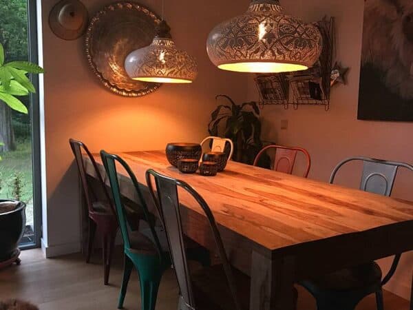 Het staat prachtig boven je ronde tafel of in tweevoud boven de lange eettafel. Maar ook de gang wordt nog mooier met deze schoonheid aan het plafond.