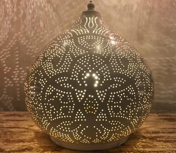 Naast de hanglamp die er overigens ook in andere modellen is, is er ook de tafellamp. Deze matchen goed samen en zorgen ervoor dat er een echte blikvanger ontstaat wanneer je die op tafel, de kast of een plankje zet. Mooi door de serene uitstraling is een mooi stuk om neer te zetten. Tot je het lampje aanzet en de kamer verandert in een sprookje van 1001 nacht.