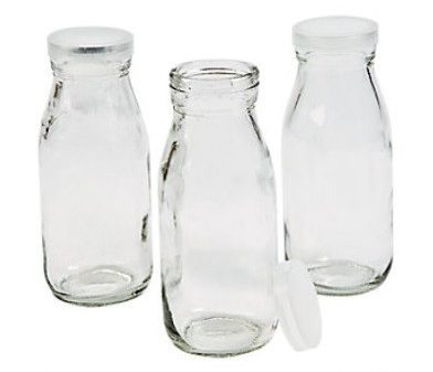De meeste versieringen zijn van papier of andersoortige materialen die eenvoudig te recyclen zijn. Zoals deze papieren rietjes, en als je het drankje dan ook nog serveert vanuit deze eenvoudige maar toch hippe glazen flesjes dan ben je wat mij betreft prima bezig ook voor wat het milieuaspect.