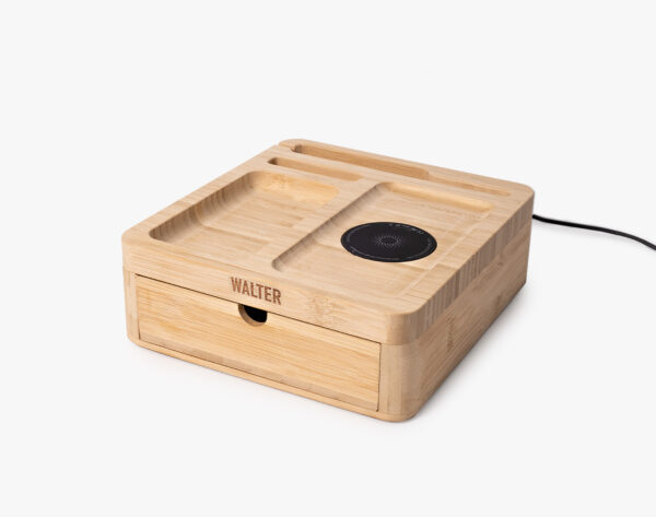 Walter Big Dock Bamboo Draadloze Oplader – Bureau Opbergbakje