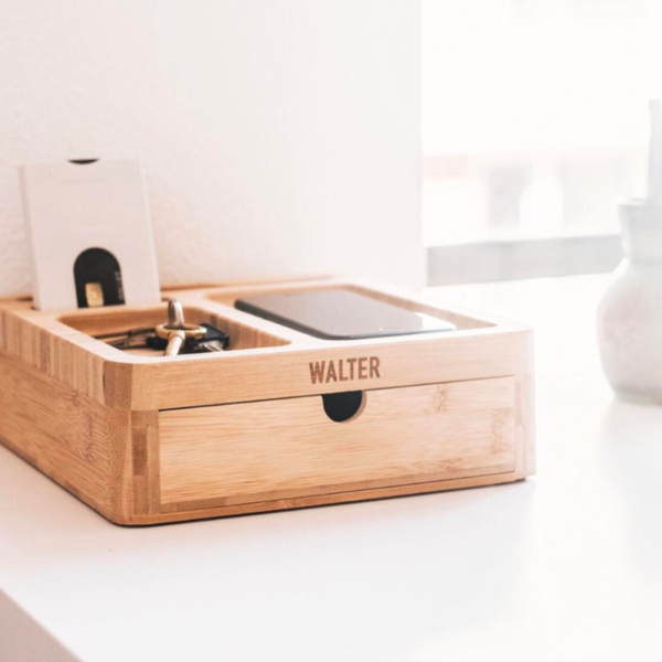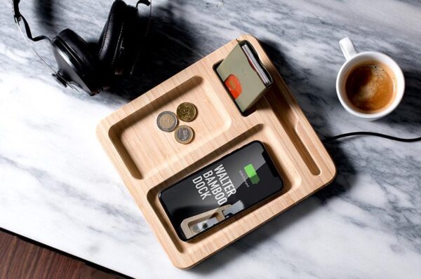 - Walter Big Dock Bamboo Draadloze Oplader – Bureau Opbergbakje