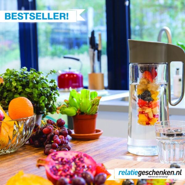Deze afsluitbare waterfles met infuser is ideaal om te laten bedrukken met jouw logo